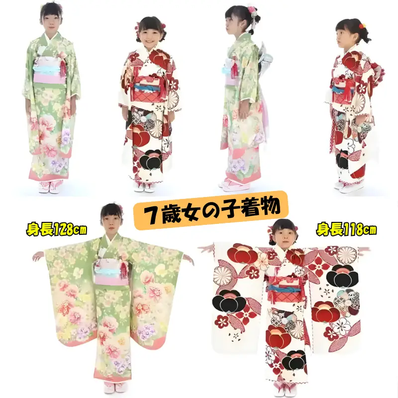 当店の7歳女の子用着物の対応身長は【110cm〜125cm】。