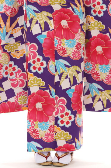 愛らしい椿とパープルの地色が華やか!幸せな古典文様に包まれた豪華な振袖。