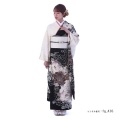 モノクロの着物地に映える縁起のいい花々が美しい、上品でかっこいい装いです。白と黒の着物地に浮かび上がるように描かれる文様は、縁起のいい吉祥文様(きっしょうもんよう)。「菊」は、太陽のように咲く姿から最も位の高い花とされ高貴さをあらわしています。皇室の家紋にも使用されています。大輪の花が美しい「牡丹(ぼたん)」はたくさんの花弁があり「百花の王」と呼ばれており、富貴、高貴、幸福を表しています。「桜」は、冬を越え咲き誇る圧巻の佇まいは、春がはじまる歓びをもたらします。幸先の良い物事のはじまりという前向きな意味が込められています。日本の伝統を感じる古典な雰囲気と、前衛的なモードさが合わさった、おしゃれな方にぴったりの装いです。