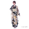 しっとりと大人っぽい黒の着物に、月明りが照らされて浮かび上がるように文様が描かれた美しいきもの。描かれる文様は、おめでたい意味の込められた伝統的な吉祥文様(きっしょうもんよう)です。「桜」は、冬を越え咲き誇る圧巻の佇まいは、春がはじまる歓びをもたらします。幸先の良い物事のはじまりという前向きな意味が込められています。大輪の花「牡丹(ぼたん)」はたくさんの花弁があり「百花の王」と呼ばれ、富貴、高貴、幸福を表しています。「手毬(てまり)」は平安時代に貴族の遊び道具だったことから高貴さや上品さの象徴とされています。また何事も丸く収まるようにと願いが込められています。思わず見とれてしまうほどの美しさ。他とは違ったオーラをまとった着姿になれる魅力あふれる一着です。