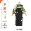 新たな旅立ちにぴったりの新緑色に梅や菊文様のお着物。黒の袴との組み合わせも上品。