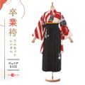 おめでたい紅白の着物とクールな黒い袴。古典文様を描きながらもモダンなデザインで仕上げたおしゃれな1着です。