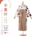 全体的に同じ茶系でグラデーションのような色合わせなので、すっきりまとまって見えるのがこちらの着物のポイント。女の子らしい可愛らしさを残しつつ、大人っぽい美しさも感じます。社会に出る前の卒業式にぴったりの装いは、非常におすすめの一着です。