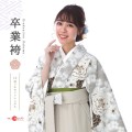 落ち着いた華やかさが可愛い、上品な晴れ着の紹介です。袴の薄茶色は「亜麻色(あまいろ)」と呼ばれ、亜麻を紡いだ糸の色のような柔らかいカラーです。着物の地色は、「白鼠(しろねずみ)」。銀の色のように上品な明るいグレーで、ともに伝統色です。