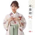 淡い色味の袴に、可愛い花々が描かれる、女性らしいデザインです、袴の薄いグリーンは「薄緑(うすみどり)」、その名のとおり薄い緑色の女性らしいデザインです。