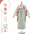 淡い色味の袴に、可愛い花々が描かれる、女性らしいデザインです、袴の薄いグリーンは「薄緑(うすみどり)」、その名のとおり薄い緑色の女性らしいデザインです。