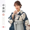 着物地の暗い青色は「二重緑(ふたえみどり)」と呼ばれます。「藍色(あいいろ)」と「黄蘗(きはだ)」を染め重ねた濃い色合いで、やや緑みを感じる深みのあるカラーです。袴の明るいグレーは「銀色(ぎんいろ)」。白金とも呼ばれる、美しい金属光沢のあり、落ち着いた上品さがあります。