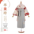 縁起のいい紅白のカラーに美しい花々が咲き誇る、おめでたい日にぴったりの装いです。「赤色」は厄除けの意味が込めれらており、お守りのような存在です。そして袴の明るいグレーは「銀色(ぎんいろ)」。白金とも呼ばれる、美しい金属光沢のあり、落ち着いた上品さがあります。