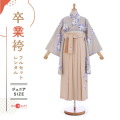 袴のベージュカラーは「桑色(くわいろ)」と呼ばれる伝統色で、桑の根皮(こんぴ)や木皮(もくひ)の煎汁(せんじゅう)に灰を媒染にして染めた薄茶色が使用されています。文様に使用される青紫色は「青藤(あおふじ)」。青色がかった薄い藤色は、平安時代より女性の人気の色味です。