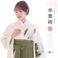 | 付属品 | 着物・袴・長襦袢(半衿付き)・半幅帯・伊達衿・草履・足袋(プレゼント)・肌襦袢(ワンピースタイプ)・腰紐4本・コーリンベルト・前板・伊達締め2本・衿芯 ※ブーツは付属されませんが、当店の有料オプションからレンタル可能です。 ※ブーツをご利用される場合、草履・足袋は付属されません。 |