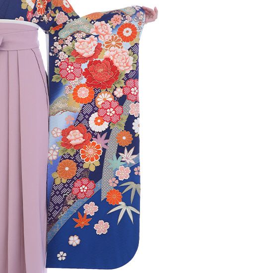 | 付属品 | 着物・袴・長襦袢(半衿付き)・半幅帯・伊達衿・巾着・草履・足袋(プレゼント)・肌襦袢(ワンピースタイプ)・腰紐4本・コーリンベルト・前板・伊達締め2本・衿芯 ※ブーツは付属されませんが、当店の有料オプションからレンタル可能です。 ※ブーツをご利用される場合、草履・足袋は付属されません。 |