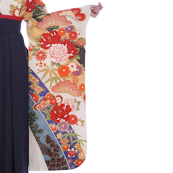 | 付属品 | 着物・袴・長襦袢(半衿付き)・半幅帯・伊達衿・巾着・草履・足袋(プレゼント)・肌襦袢(ワンピースタイプ)・腰紐4本・コーリンベルト・前板・伊達締め2本・衿芯 ※ブーツは付属されませんが、当店の有料オプションからレンタル可能です。 ※ブーツをご利用される場合、草履・足袋は付属されません。 |