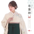 | 付属品 | 着物・袴・長襦袢(半衿付き)・半幅帯・伊達衿・巾着・草履・足袋(プレゼント)・肌襦袢(ワンピースタイプ)・腰紐4本・コーリンベルト・前板・伊達締め2本・衿芯 ※ブーツは付属されませんが、当店の有料オプションからレンタル可能です。 ※ブーツをご利用される場合、草履・足袋は付属されません。 |