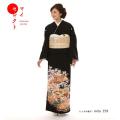 京友禅の意匠や技術を競う格式ある「私の好きな着物大賞」受賞の黒留袖をまとって、お祝いの気持ちを華やかに表現してみませんか。黒地に浮かぶ桜の華麗なる舞。上前中央に置かれた熨斗(のし)の一本いっぽんに、デザイン化された梅が描かれています。梅は百花のさきがけとも春告げ花とも言われる、おめでたい花。平安貴族に、ことのほか愛された花でした。そのおめでたい梅柄の熨斗を扇のように束ねる細紐が流水にシンクロするように優雅な線を描きます。もう一つ置かれた熨斗に描き込まれた高貴な菊花は、裾近くに配された金銀の観世水と共に品の良い豪華さを際立たせます。後ろ身ごろは向き合う2つの熨斗が扇のように束ねられ、その間を流水と赤霞が渦を巻いて流れます。熨斗の模様は梅と若松。いずれも、みずみずしい生命感が匂い立つ文様です。洗練されたゴージャスな美しさが映える黒留袖は、ファッショナブルな装いがお好きな貴女にお勧めしたい一枚です。