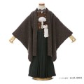 深みのあるカラーに、ツイード生地の羽織と蝶ネクタイを合わせた、個性的でお洒落なコーディネートです。着物には、小花の文様が散りばめられます。あえて男の子の着物に可愛いお花の文様をさりげなく描くことで、上品に仕上がっています。着物地のブラウンは「黄褐色(おうかっしょく)」。黒みを帯びた茶色のことです。袴のグリーンは「青漆(せいしつ)」と呼ばれ、深く渋い緑色のこと。青が付きますが味わい深い、濃い緑色の漆器の色が使用されます。どちらも深みがあって重厚感があり、格上げしてくれる上品なカラーです。大切な人生の節目のお祝いに相応しい羽織袴スタイルですが、遊び心が合わさりセンスの良さを感じます。他とは被らない自分だけのスタイルで、素晴らしい1日をお迎えください。