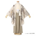 淡いベージュカラーが優しい上品さを感じさせます。柔らかい雰囲気ですが、描かれる文様は男の子きものにぴったりな力強いものばかりです。大空を大きな羽で羽ばたく「鷹」。遠くまで見渡すことが出来る鷹の目には、本質を見抜く、先を見通すという意味があり、また鋭い爪は獲物を掴み離さないということから、掴んだ幸運を離さないという意味が込められます。豪華で大きい船は「南蛮船」と呼ばれ、当時日本の和船とは違った大きな構造が物珍しく、着物や屏風などに描かれるようになりました。旗がたなびく姿が華やかなので晴れ着によく使用されます。また一緒に描かれる海の「波」は、寄せては返すを果てしなく繰り返す波の動きから、永遠や長寿の意味が込められます。一見シンプルに見える着物ですが、羽織の袖や背中に文様が描かれることで、控えめで品のある美しさを感じます。ベージュは肌馴染みがよく写真映えもするので、お祝いのシーンにぴったりです。他とは被らない装いですが、日本の伝統も感じることが出来るのがこちらの着物の大きな魅力でしょう。