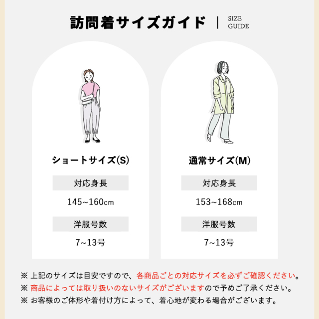 | 対応身長 / 対応号数 | Sサイズ:145~160cm位 / 洋服サイズ 7~13号位 Mサイズ:153~168cm位 / 洋服サイズ 7~13号位 |