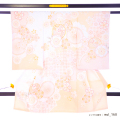 白地にクリームのやわらかな色合いを重ね、鞠と桜の文様を上品にあしらった産着です。丸みのある鞠には「円満」や「成長」の願いが込められ、桜は健やかな未来を象徴する吉祥文様として親しまれています。やさしい色調が赤ちゃんの愛らしさを引き立て、お宮参りの格式ある場にも自然に馴染みます。写真にもやわらかく映えるため、思い出に残る一日を上品に演出してくれる一着です。