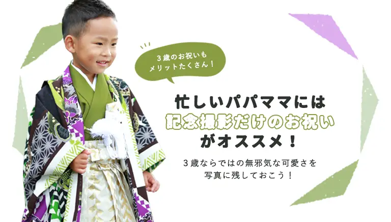 3歳のお子さまはまだ小さく、長時間の外出や着物の着用が負担になることも考えられます。
