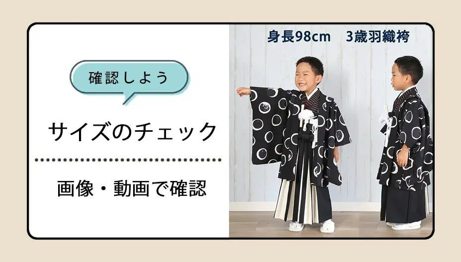 当店では、実際にお子さまが着用した画像や動画をご覧いただきながら、女の子・男の子それぞれのサイズ感を比較できるようにしています。