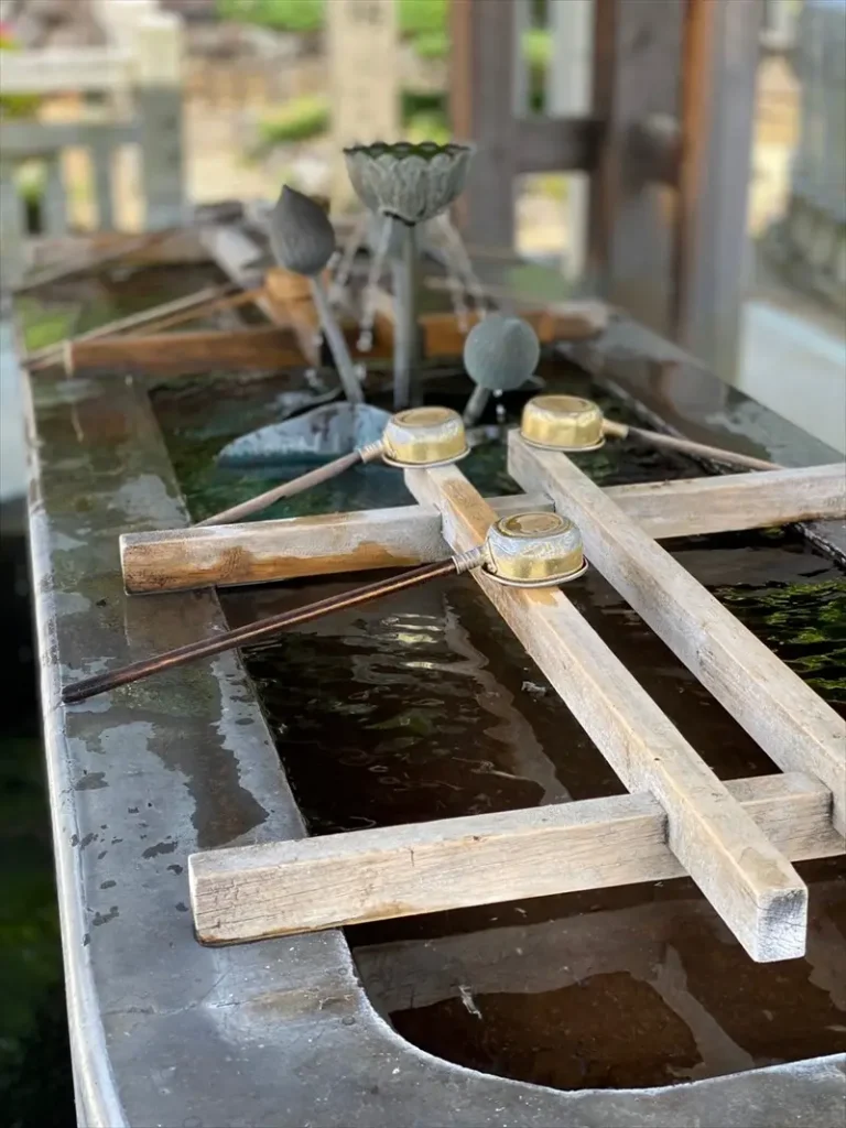 • 持っていた柄杓を縦に持ち、残った水を柄に流して柄杓を清める。