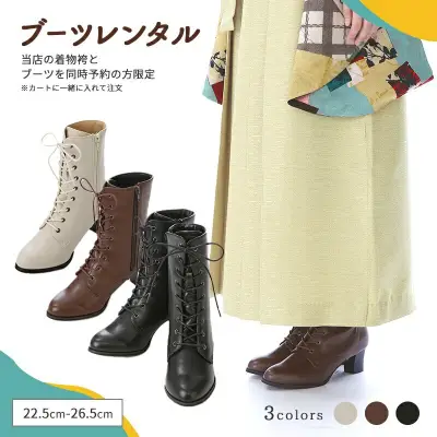 ブーツはブラック・ブラウン・ホワイトの3色からお選びいただけますので、振袖やお好みに合わせたコーディネートが楽しめます。