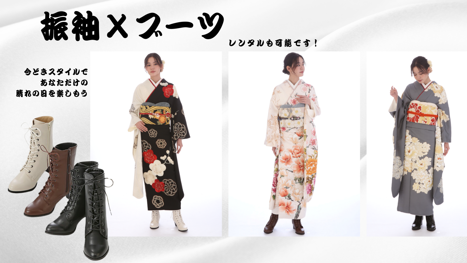 当店なら【振袖×ブーツ】スタイルがトータルで揃います