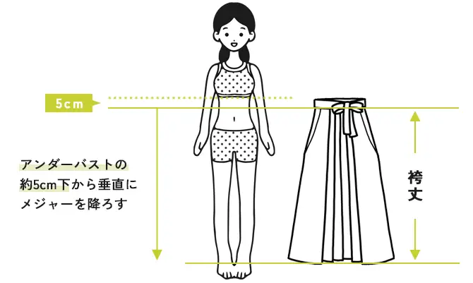 アンダーバストの約5㎝下から垂直にメジャーを降ろし、お好みの丈を測ります。