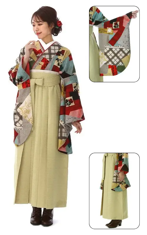 - 袴を無地やシンプルな色で合わせると知的な印象にまとまります。