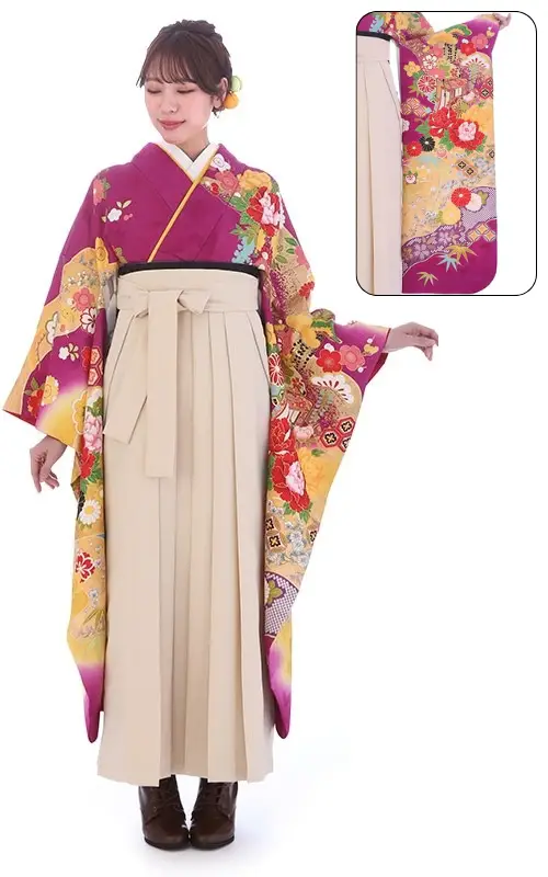 袴丈とのバランスが取れていないと、袖が袴に埋もれてしまったり、逆に袖だけが目立ってしまうこともあるため、着物の種類に応じた丈感の調整が大切です。