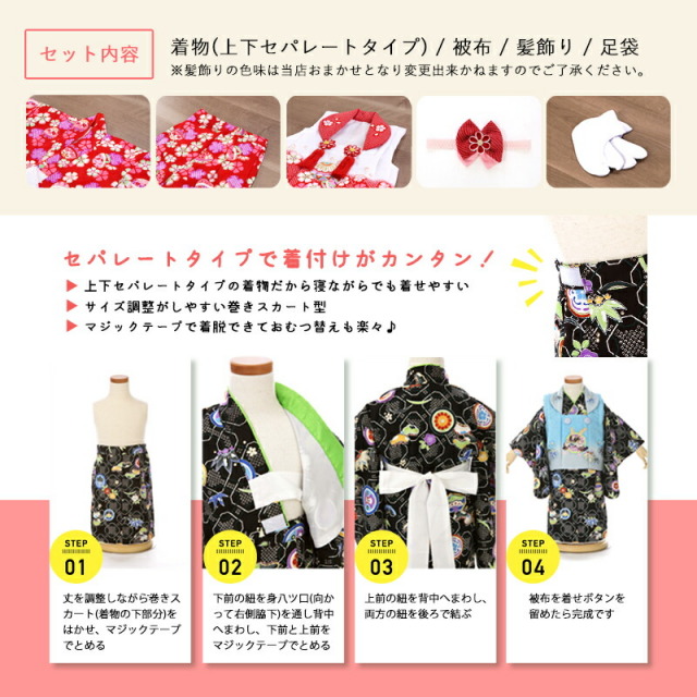| 付属品 | 画像着物一式・髪飾り・足袋(11-12cm) |