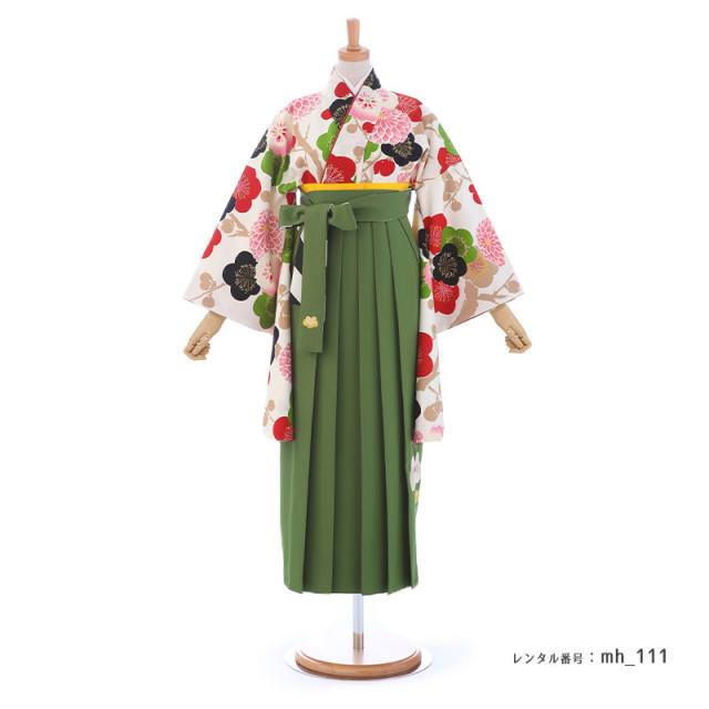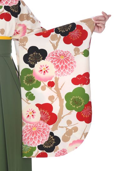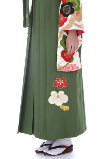更に全体をキュートに仕上げてくれるのが、抹茶色の袴にあしらわれた丸っこい梅の文様!