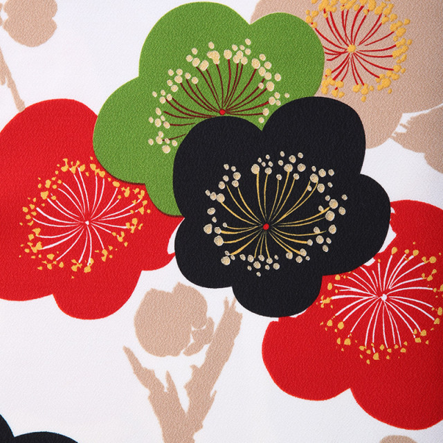 縁起物の象徴「松竹梅」の1つである「梅」はまだ冬の寒さが続く時期に美しい花を咲かせます。そんな姿に忍耐・健康や気品を感じ、古くからおめでたい文様とされてきました。