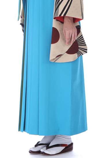水色の袴には、目立ちにくい箇所に黄色を使っています。歩いたり、動いたりするたびにきいろがチラッと見えるので、和服らしい隠れたおしゃれを楽しめますよ。