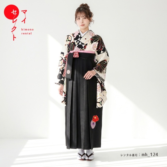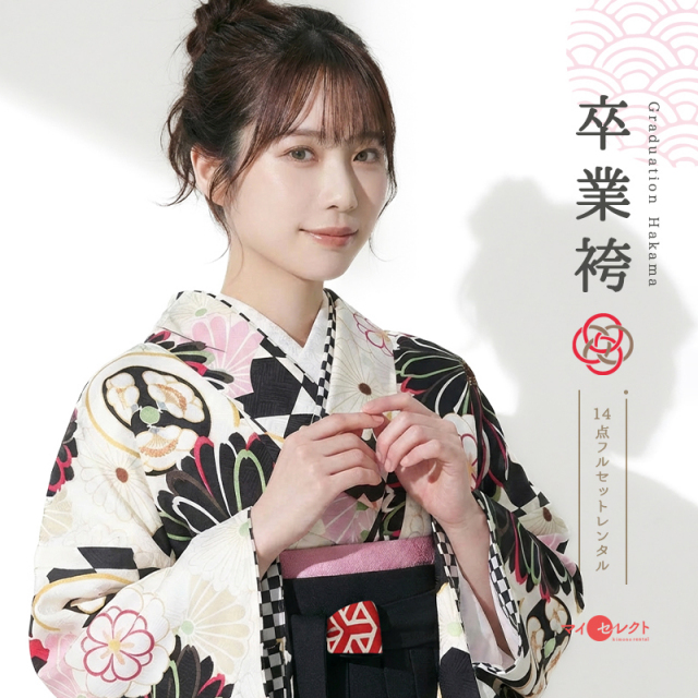 | 付属品 | 着物・袴・長襦袢(半衿付き)・半幅帯・伊達衿・巾着・草履・足袋(プレゼント)・肌襦袢(ワンピースタイプ)・腰紐4本・コーリンベルト・前板・伊達締め2本・衿芯 ※ブーツは付属されませんが、当店の有料オプションからレンタル可能です。 ※ブーツをご利用される場合、草履・足袋は付属されません。 |