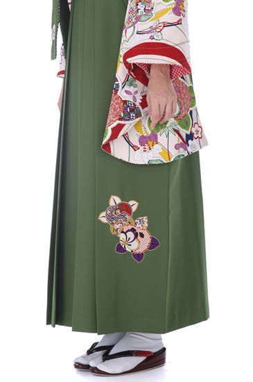 格調高い文様の小振袖にコーデしている緑の袴は調和を表す色で、安心感や安定を表しています。華やかな中にも調和のとれるコーディネートで装いを彩る作品です。