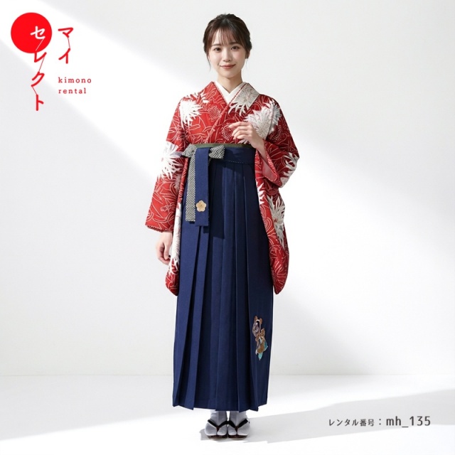 | 付属品 | 着物・袴・長襦袢(半衿付き)・半幅帯・伊達衿・巾着・草履・足袋(プレゼント)・肌襦袢(ワンピースタイプ)・腰紐4本・コーリンベルト・前板・伊達締め2本・衿芯 ※ブーツは付属されませんが、当店の有料オプションからレンタル可能です。 ※ブーツをご利用される場合、草履・足袋は付属されません。 |