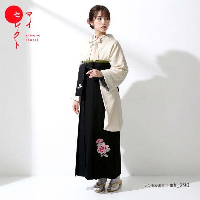 | 付属品 | 着物・袴・長襦袢(半衿付き)・半幅帯・伊達衿・巾着・草履・足袋(プレゼント)・肌襦袢(ワンピースタイプ)・腰紐4本・コーリンベルト・前板・伊達締め2本・衿芯 ※ブーツは付属されませんが、当店の有料オプションからレンタル可能です。 ※ブーツをご利用される場合、草履・足袋は付属されません。 |