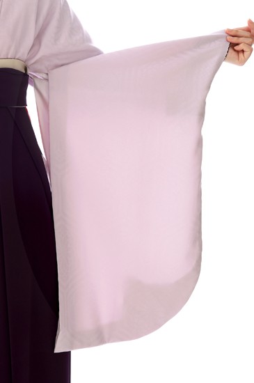 淡い薄ピンクの着物には地紋として吉祥文様「梅」が織られていますが、それ以外の文様はなくシンプルです。
