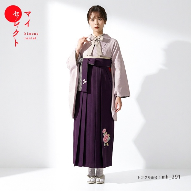 | 付属品 | 着物・袴・長襦袢(半衿付き)・半幅帯・伊達衿・巾着・草履・足袋(プレゼント)・肌襦袢(ワンピースタイプ)・腰紐4本・コーリンベルト・前板・伊達締め2本・衿芯 ※ブーツは付属されませんが、当店の有料オプションからレンタル可能です。 ※ブーツをご利用される場合、草履・足袋は付属されません。 |