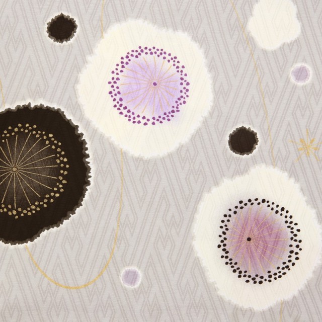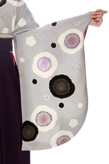 グレーの地色の着物には、「紗綾形(さやがた)」と呼ばれる地紋が入っています。