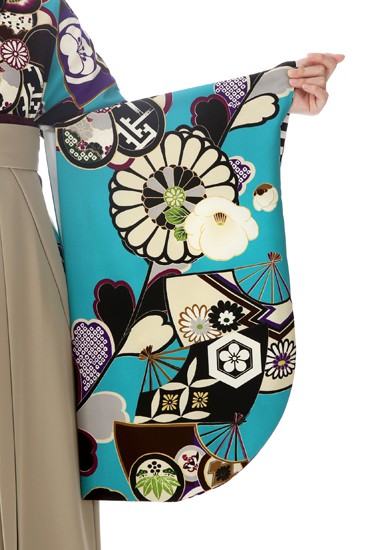 また裾の方には着物と同様のスカイブルーで「梅文様」が描かれています。