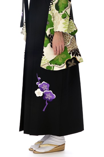 また裾近くと袴紐には紫色の「梅」文様。