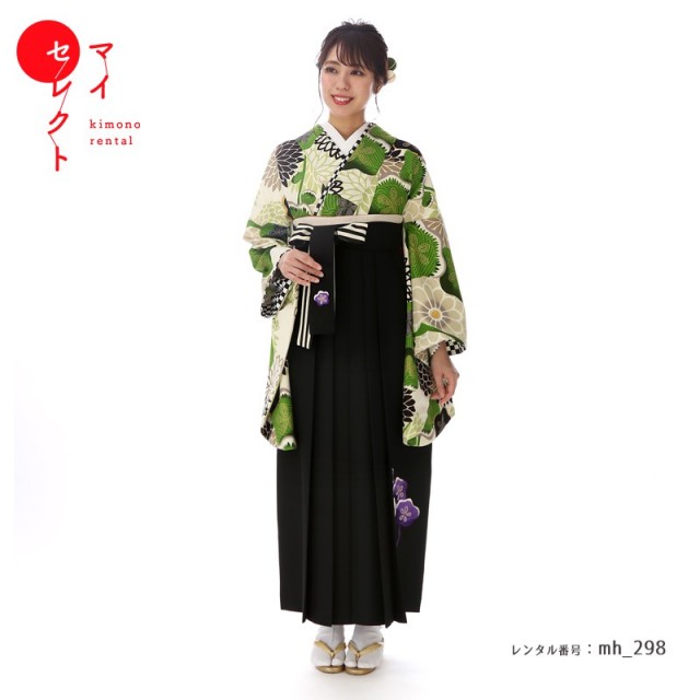 | 付属品 | 着物・袴・長襦袢(半衿付き)・半幅帯・伊達衿・巾着・草履・足袋(プレゼント)・肌襦袢(ワンピースタイプ)・腰紐4本・コーリンベルト・前板・伊達締め2本・衿芯 ※ブーツは付属されませんが、当店の有料オプションからレンタル可能です。 ※ブーツをご利用される場合、草履・足袋は付属されません。 |