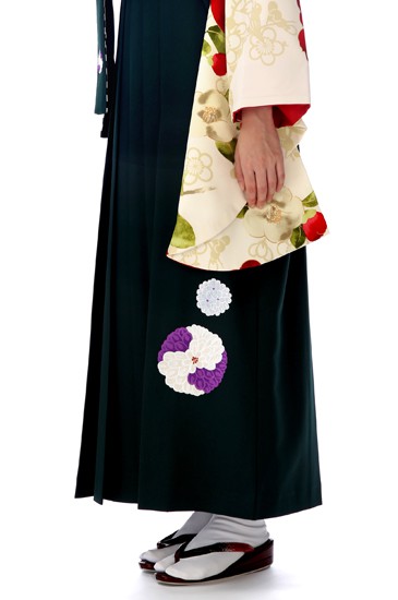 華やかな着物を引き立てるシックな袴にも古典文様が描かれています。