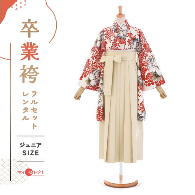 ベージュ色の袴は落ち着いた雰囲気をプラスし、着物の華やかさを引き立てています。