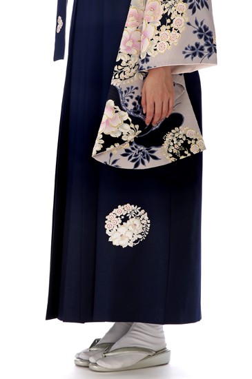 これらの伝統文様をくすみカラーで可愛らしく描き、黒の袴でキリッとカッコよくまとめた現代風のデザインをお楽しみください。
