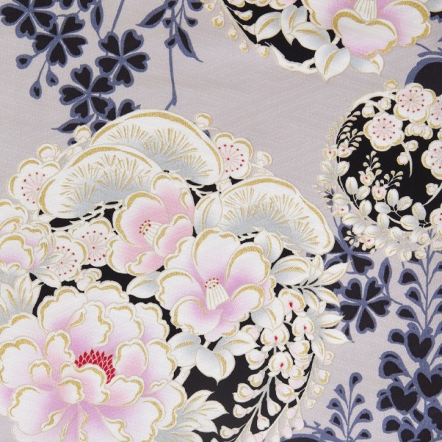 白とピンクを基調に華やかに描かれる草花は、どれも吉祥文様と呼ばれる縁起が良いものばかり。