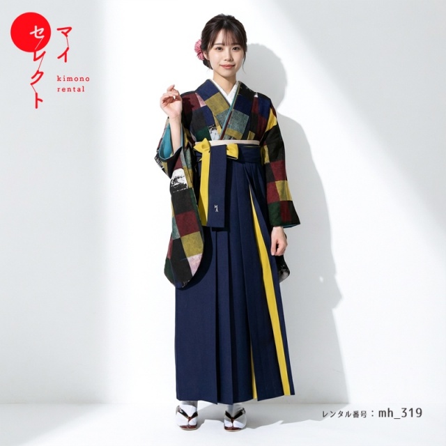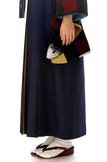 動くたびにちらっと顔を出す袴ひだの黄色は着物にも使われている黄色とマッチして全体に統一感がある仕上がりにしてくれます。