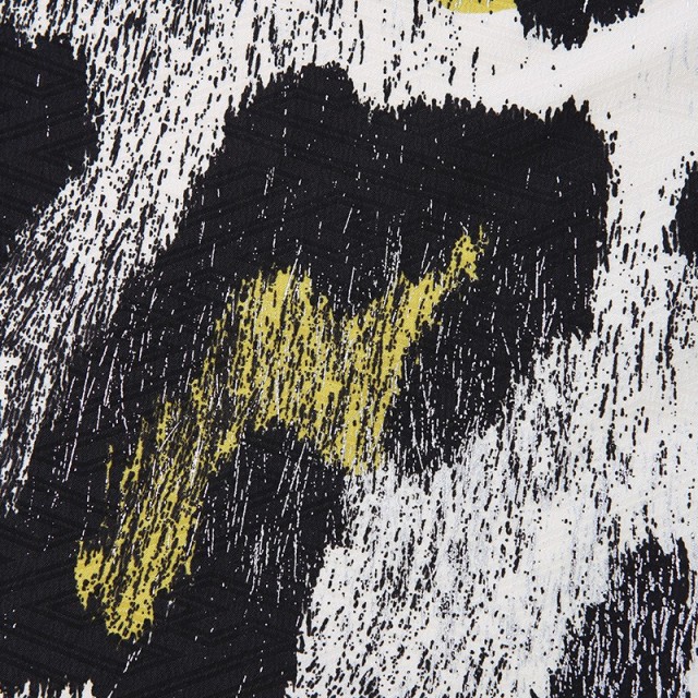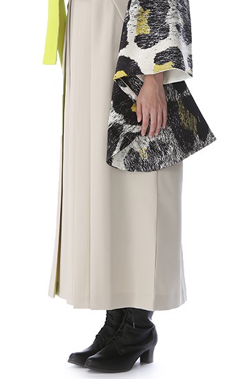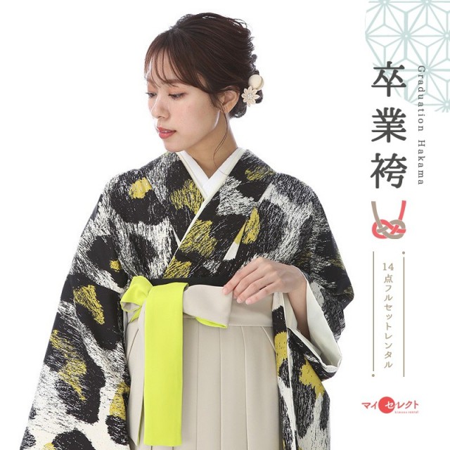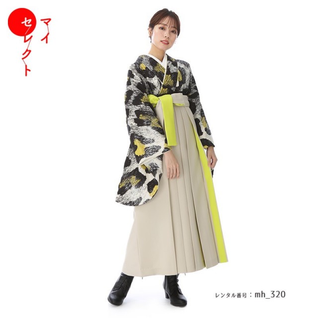 モノトーンカラーで色合いは落ち着いた印象ですが、ビビットな蛍光イエローがアクセントカラーになっていて華やかに着ていただけます。大きく描かれたヒョウ柄がとてもクールで、まるでアーティストのステージ衣装のよう。お洒落な着こなしで、あなただけのスタイルを確立していただけます。またヘアアクセサリーやメイクを着物に合わせてこだわるとトータルコーディネートを楽しめます。